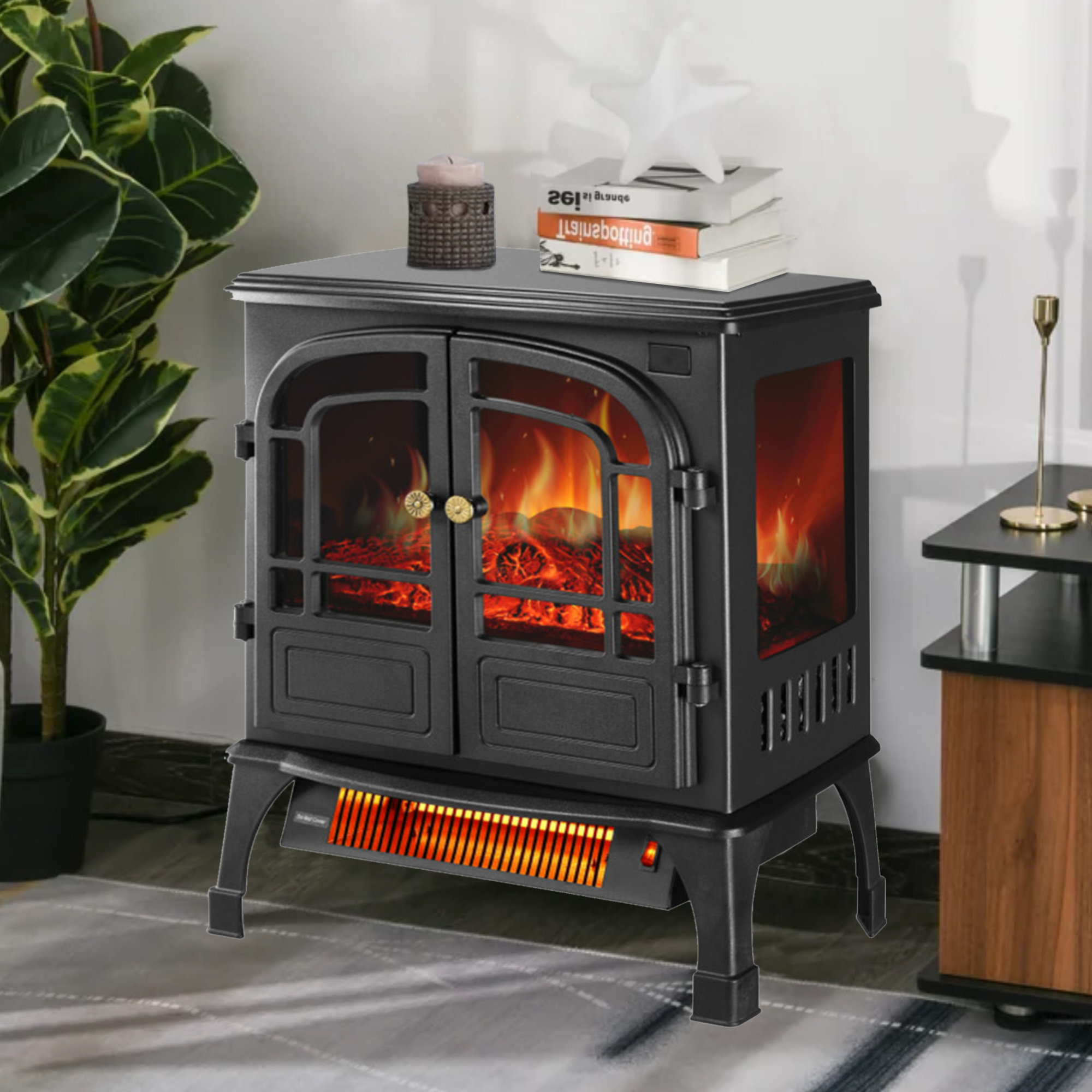 R.w.flame electric fireplace infrared stove heater, 23 freestanding fireplace heater, 3d realistic flame effects, adjustable brightness and heating mode, overheating safe design, 1000w/1500w, black 4.4 out of 5 stars 710
